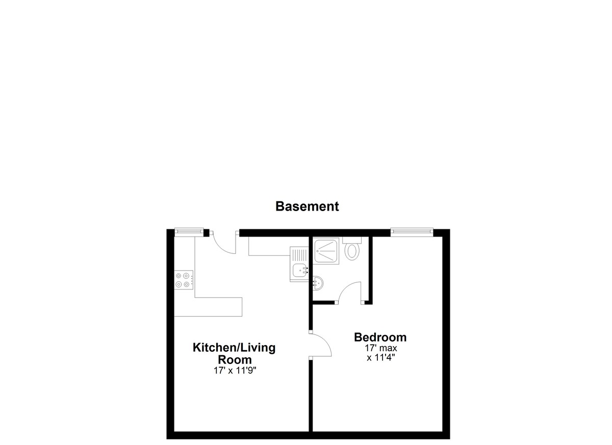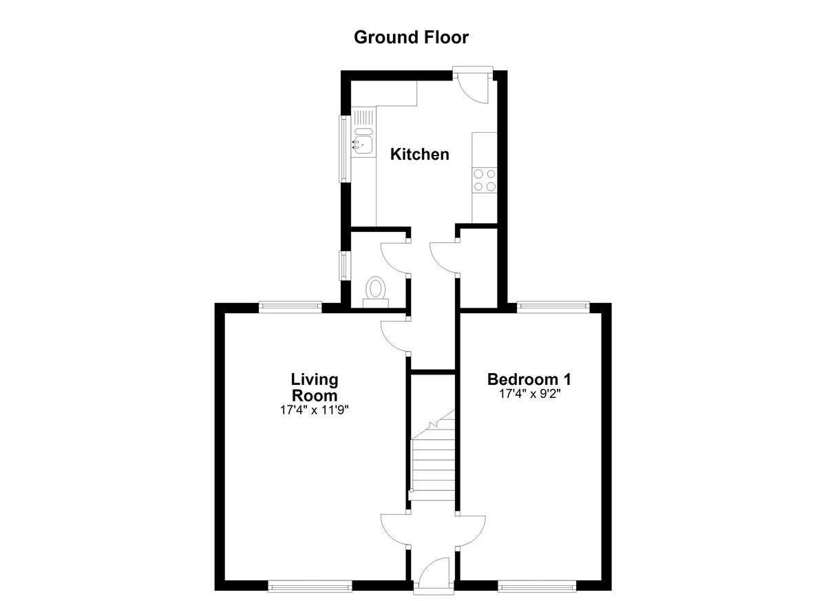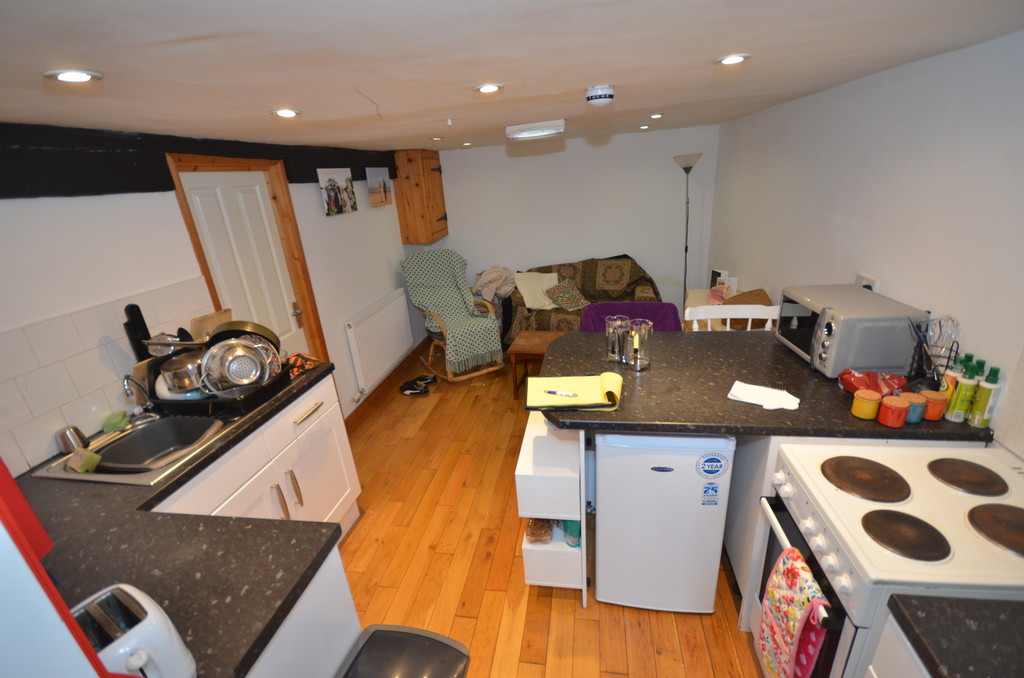 OPEN PLAN KITCHEN/LOUNGE 17′ 0″ x 11′ 9″ (5.2m x 3.6m) Fully fitted kitchen including white goods. Laminate floor. uPVC window. Central heating radiator.