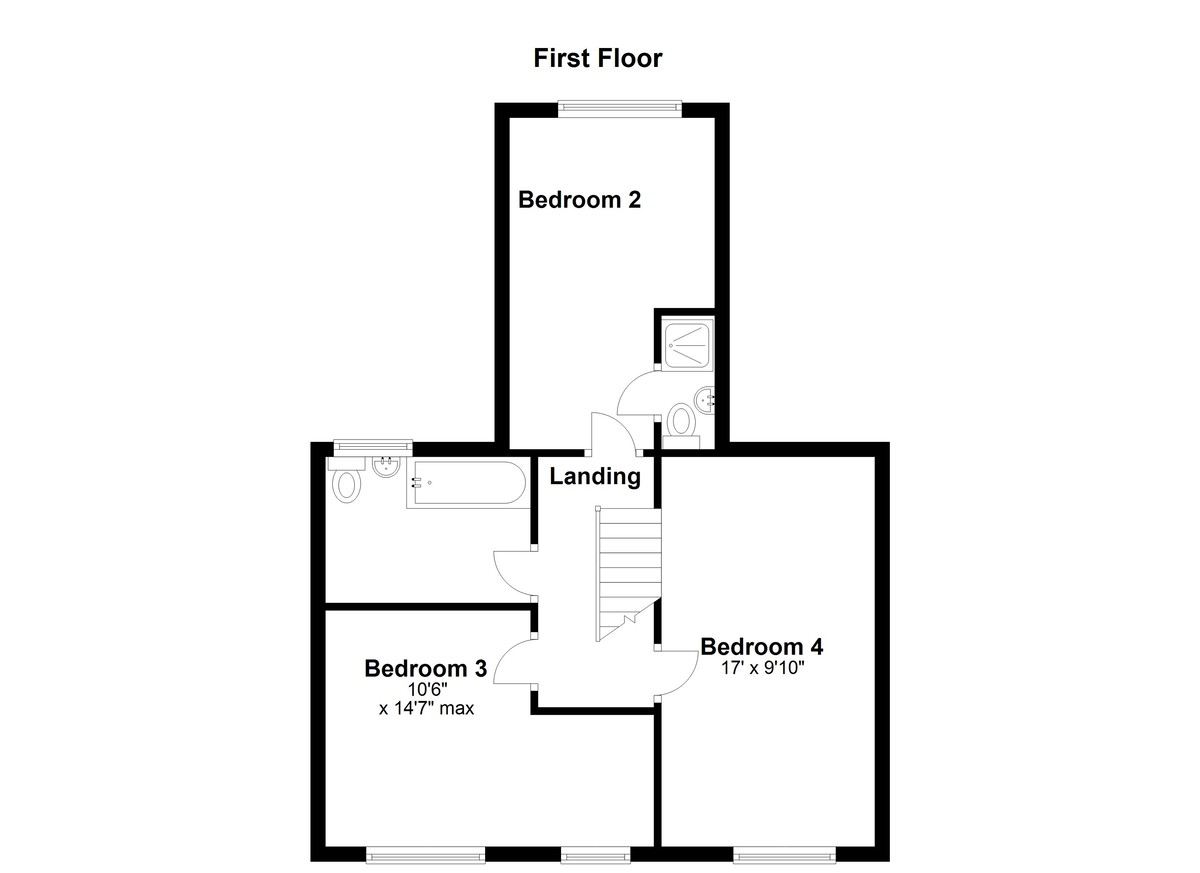 BEDROOM 1 17′ 4″ x 9′ 2″ (5.3m x 2.8m) Two uPVC windows. Central heating radiator. Laminate floor.