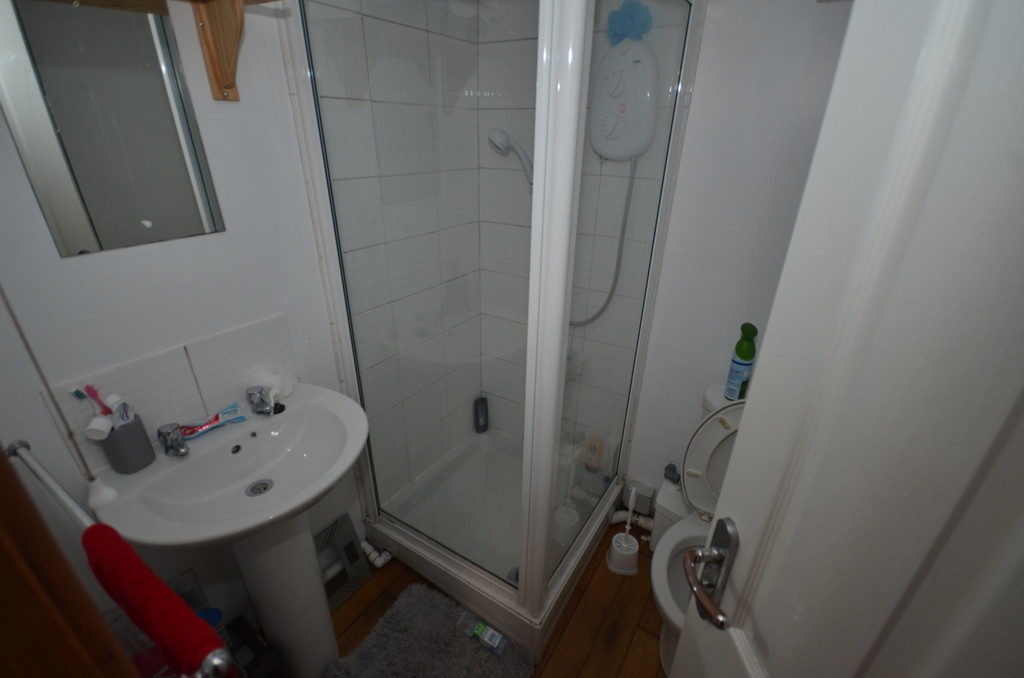 EN-SUITE Shower cubicle. Wash hand basin WC: Laminate floor. Central heating radiator. uPVC window.