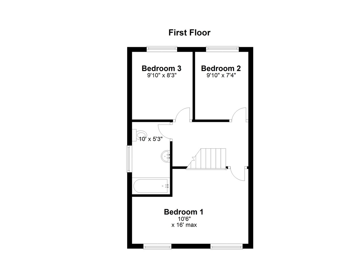 BEDROOM 1 10′ 6″ x 16′ (3.2m x 4.88m)